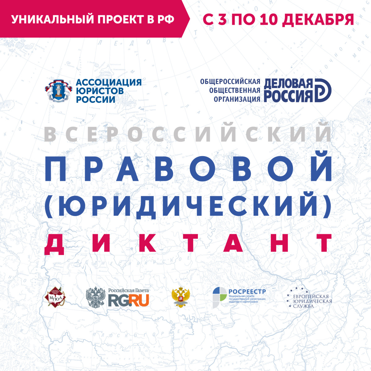 В течение недели, с 3 по 10 декабря 2019 года, любой желающий в возрасте от 14 лет может принять участие в написании III Всероссийского правового (юридического) диктанта и проверить свои познания в юриспруденции.